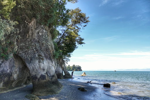 Read moreLook for the Tapu Bay Reserve signpost and you can drive down to the beach where there's plenty of parking. Tidal bay which means it's a lot quieter but definitely worth going at high tide for swimming. Nice to walk around the rock arches that are forming. Has had some issues this summer with water contamination, so no sea food gathering and pay to research if there's any current...