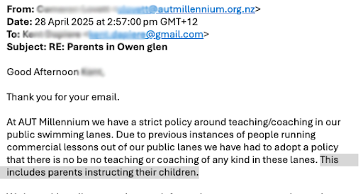 I have contacted management via email a couple of times in the past few months to raise the issues and I was given reassurances that the problems would be addressed with staff. It looks though that things haven't really improved and that there seems to be little adult supervision that some of the kids in the red shirts apparently still need. The substandard level of service and customer orientation is astonishing given this place claims to be the flagship aquatic pool in this country. Very sad to observe. Unfortunately alternatives are either Westwave or the pool on Whangaparaoa both of which are quite a drive from around Albany, Browns Bay, etc.