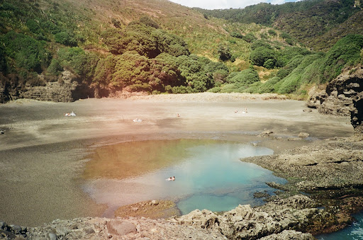An easy walk here from the southern part of Piha Beach. This area of the southern beach is best known for two local sites: The Keyhole (a natural tunnel), and the Gap and Blue Pools. You can easily reach both at low tide by walking along south along the water from Piha Beach. If the tide is high, use the trail from the south parking lot to hike up to Tasman overlook, then just keep hiking south past the overlook until the trail heads back down to the beach and the Blue Pool. The Blue Pool is a great place for laying in the sun in n the beach that surrounds it, and a nice place for soaking and swimming, too. The beach here is also usually less crowded and more private than the main beach area, and is sometimes somewhat sheltered from the wind. A “must see” when you...