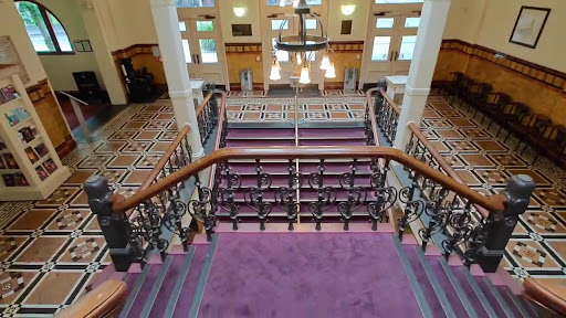 I loved that many original details are still there: the tiles, the stained glass windows, the stair railings, the wooden floors — all well preserved and in good condition. You can tell they really care about the history of the place.