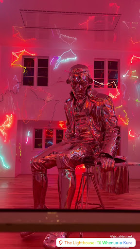 Read moreWhen I first saw this, what looks like a small two-story house in this prime waterfront location on the edge of Auckland's busy harbor with spectacular views, I wondered what it was as it looked totally out of place at the end of busy Queen's Wharf. It turns out that the house is a public artwork by Michael Parekowhai, a renowned Maori conceptual artist and known as The Lighthouse. It's a replica of a 1950s New Zealand family home on Queens Wharf. When I visited this small house there was an installation of light as well as a polished stainless steel sculpture of Captain James Cook (known as The English Channel). You can see The Lighthouse from Queens Wharf or from the sea on the Waiheke or Devonport ferries. It's illuminated at night. It's a pity that there's no information board on display, however...