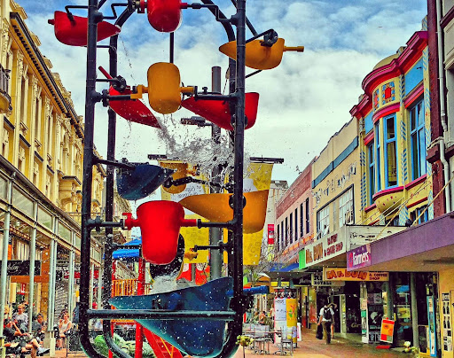 If you ever find yourself wandering the vibrant streets of Te Aro, Wellington, let your feet lead you to the iconic Bucket Fountain on Cuba Street. A whimsical concoction of moving art, color, and the playful dance of water, this unique fountain is more than just a landmark; it's an experience.