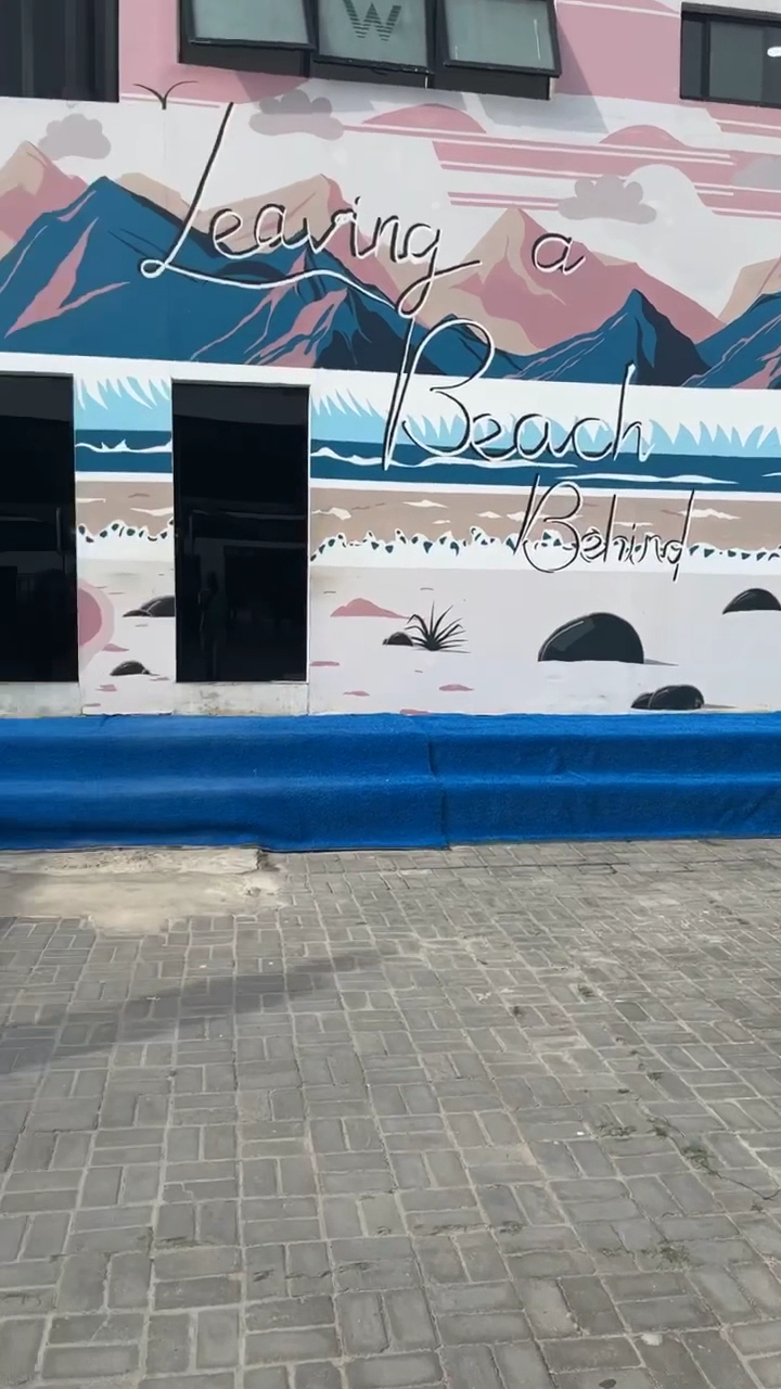 Got to the beach and from the entrance, I got hyped. There was a cute picture stand with the brand's name where you can take pictures (picture 1).
