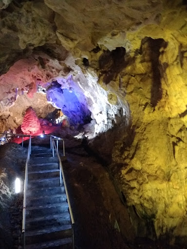 Ā Ā Ā Read moreWhen we got to the cave we got out of the boat and there were some stairs to climb to get to the entrance. Once we go there he turned on the generator and gave us all a chance to take in the depths of the cave while standing. To get into the cave we walked down a flight of stairs. It would have been pitch-black but the generator was turned on to power many colorful lights that lit up the inside of the cave.