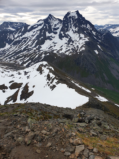 Read more20 juni 2023 - De top van Slogen bereikt via de hut Patchellhytta. Er liggen nog veel sneeuwvelden waar je overheen moet. Daar lopen geen duidelijke sporen overheen. Deze sneeuwvelden zijn ook vrij stijl. Dus weet wat je doet en heb goed evenwicht want uitglijden kan fataal zijn. De route aanduidingen zijn bijna nergens te zien. Eenmaal op de graat is de route op veel plekken duidelijk te zien. De stukken daar over de sneeuw zijn al belopen. Je kunt ook over de stenen klauteren. Het laatste stuk is echt handen- en voetenwerk. Het uitzicht is...