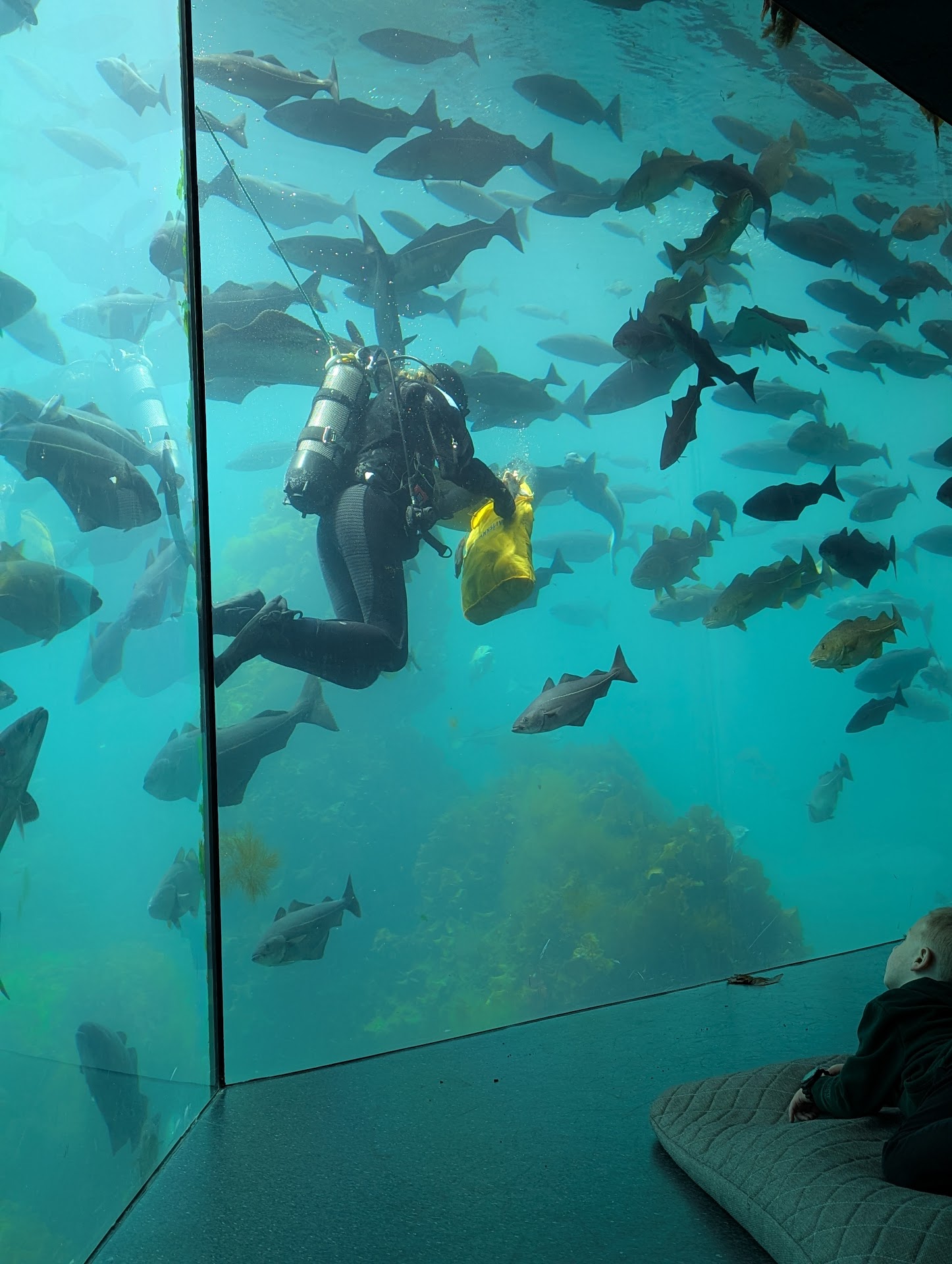 Atlanterhavsparken or the Atlantic Sea Park in Ålesund was lots of fun. A big recommendation is to get there when they open so you can see the penguins have breakfast and then the otters have breakfast. The entire facility is family friendly. Obviously children should be supervised but everything seemed very safe. Upon entering the building the ticket counter is clearly pointed out. There are coat racks and lockers. This will be useful if it’s cold and or rainy since you won’t need that jacket inside. From there you can use a free map to decide where to go or just have a wander about. There many creatures from the sea here along with information on them all. The staff are wonderful and will be happy to answer questions. While watching the penguin feeding the very knowledgeable woman giving is all information about the penguins mentioned the harbor seals they have. She recommended going upstairs to the small theatre they have to watch the short documentary on the seals at Atlantic Sea Park. It was informative and shows just how much the staff love what they do.
