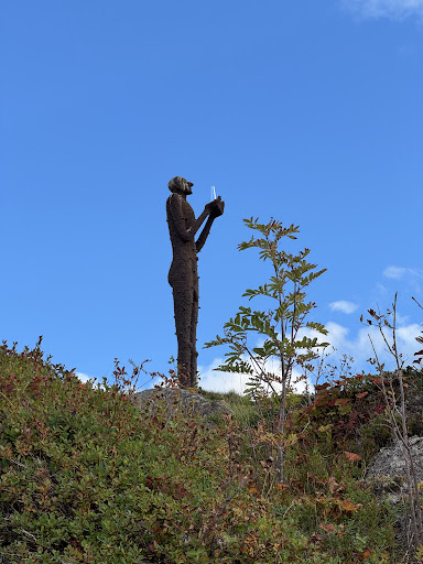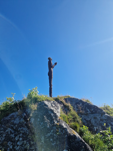 We parked down at the end of the road and then walked the short walk along the water and up the little hill. Lovely views and the sculpture has some cool hidden details...