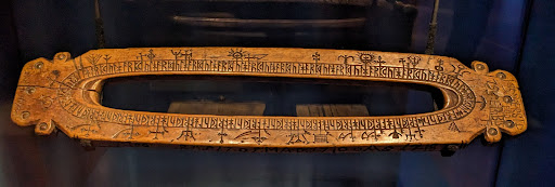 The upper floor celebrates Norway’s historic “Laws of the Land” statute (written 750 years ago). It also discusses the law’s earlier origins, subsequent revisions, taxation activities, citizen obligations (e.g., weapon assemblies), and various legal charters. Some samples and replications of original documents are shown, along with other interesting artifacts. The calendar stick (around 1600s) particularly caught our attention. This area of the museum probably relies too much on textual displays, but what I read was quite illuminating.