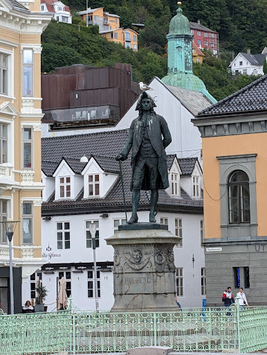 Read moreCentrally located and right at the fish market. Don't know if it's true but our local guide told us that Holberg was born in Bergen but left as a child and only came back once at the age of 15. At some point he wrote that Bergen was the dirtiest, smelliest and most disgusting place that he had ever been, so the people of Bergen put up a statue of him so that he would be here forever. They also enjoy when the seagulls poop on his head. Again, don't know if it's completely true or not, but it's...