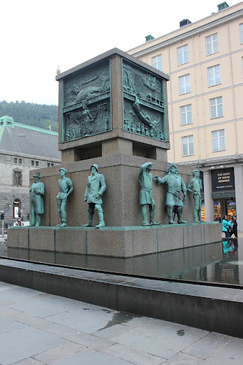 It is quite impressive, with several sailors carved into all four of its sides, and is on a raised plinth containing water in the middle of a pedestrianised shopping street on the way into the centre of Bergen.