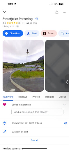 Read moreRaudonas turas, reikia energijos 1,8km aukštyn ir 1,45žemyn, 2val. Bendrai, bet sėdėsite viduje, žinoma laikas prisideda, labai smagu, kad pritaikyta lipti, prisilaikyti grandinės, lynai, kopėčios, ar tiesiog tiltai. Smagu, kad einant gali rasti vis kitokį kaimietišką paskatinimo žodį, kad iki tikslo netoli. O vaizdas nuo viršaus puikus, o viduje, hytos-turistams, nemokamai sušilti ir pasislėpti nuo vėjo, yra krosnis ant jos galima užsivirti vandenį, yra elektros pasikrauti telefonui, viduje sandaru ir šilta, joks vėjas nebaisus. Rekomenduoju aplankyti. Viskuo reikia pasirūpinti pačiam-malkos, vanduo,...