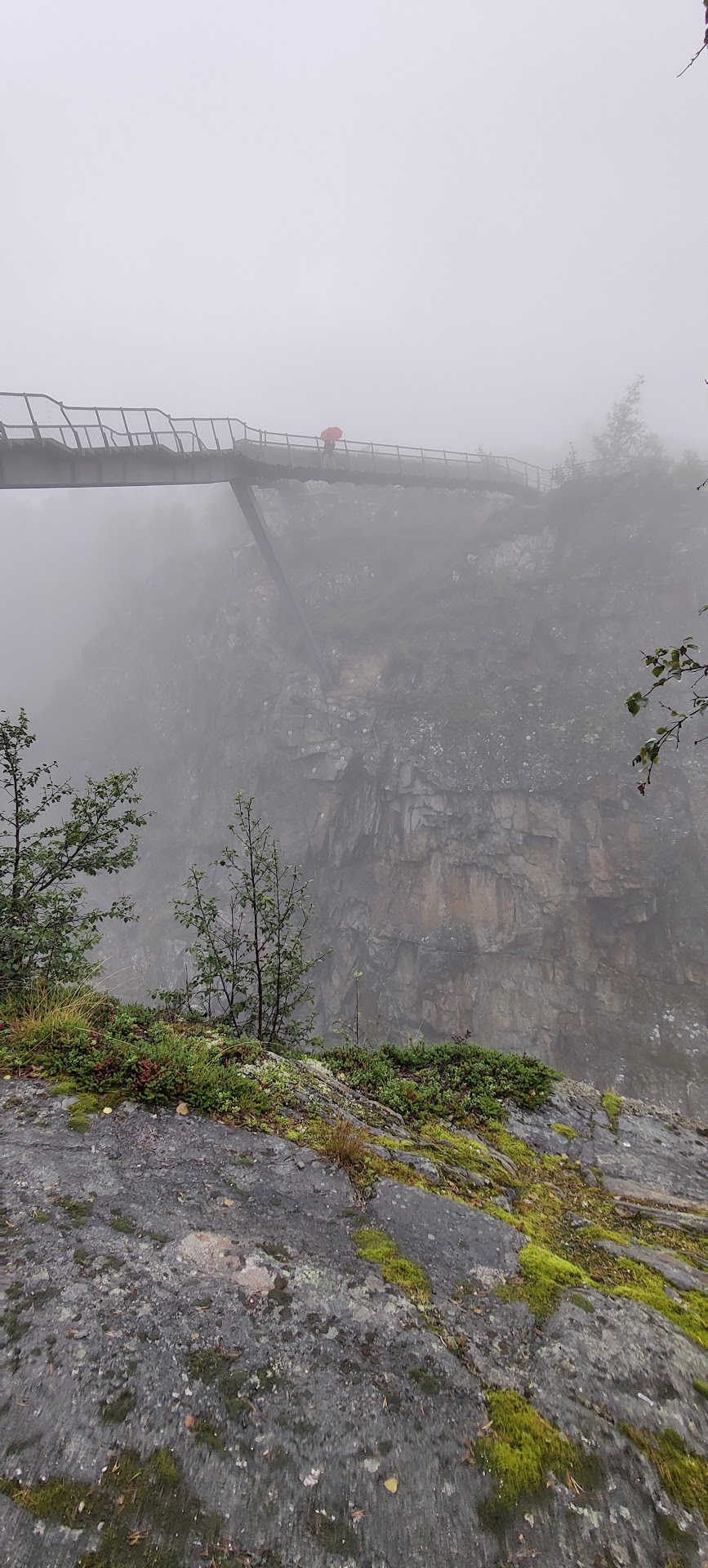 This was one of the most picturesque areas my husband and I have been in Norway. The view from the overlook is spectacular, the view from down near the river is okay. I may have had a better opinion of it, but after a rainy day, this hike had me legitimately afraid of wiping out as a good portion of it is somewhat treacherous medium-sized rock scrambling and there are segments where there is some washed out trail with slick mud as well. That being said, I'm really glad to have had the opportunity to take on the challenge of this trek. I recommend it only for experienced hikers and those without any kind of mobility issues as there isn't much in the way of assistance or room for error on narrow paths near ateep.embankmenta.. The trail is very well marked, which was a wonderful thing given the almost bushwhacking fewl...