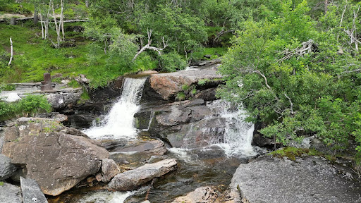 The place is great and worth a visit if in the area.Many thanks to the people who worked and are still working on developing the area.Nevertheless,I would definitely not recommend to go further than Dagsturhytta in the forest,unless you are really well trained.Even though it is not more than 1km and there are stone steps,it is extremely abrupt. It gets very narrow after a while if you take direction to Utsikten/Fossene,and there is nothing to hold on.Absolutely dangerous for kids there,to my mind.Better to take a car trip up to these 2 places.(Did not know about it and the kid had a serious fall down on the way back,even though he is well trained.Luckily,it went fine this time,but we surely won't take again...