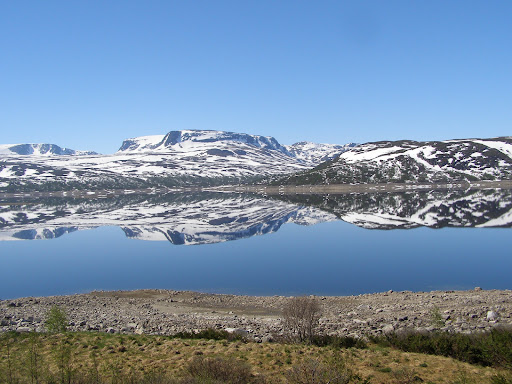 Read moreFantastisk utsikt mot Hallingskarvet med vatnet i front. Det var særskilt vakkert i morgonsola...