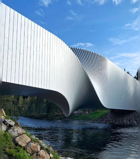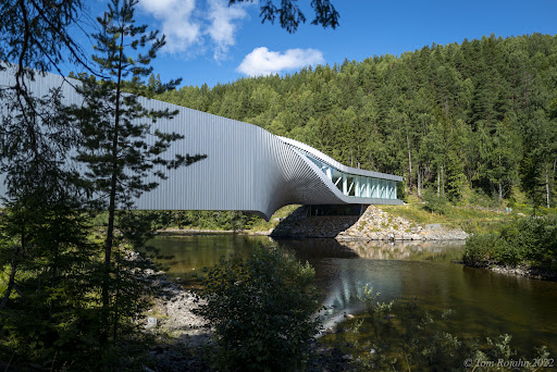 The Twist is a gallery, a bridge as well as sculpture, all in one. The 1000 square meter building twists into a sculptural form and ranges 60 meters across the Randselva river. The building was designed by the Danish star architects BIG - Bjarke Ingels Group. It is referred to as a "must-see" artistic destination by the New York Times, Bloomberg, and The Telegraph. In a rhythmic interplay of woodland nature, The Twist is a gorgeous gallery with mixed light sources and river views. The Twist keeps three galleries; Closed Gallery, Twist Gallery, and Panorama Gallery. From the south side of the river, visitors reach through a spectacular double-height space into the Closed Gallery, with precise sightlines through the whole building to the north entrance.