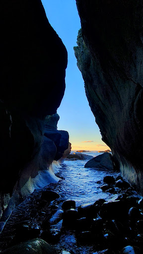 Read moreEt virkelig spektakulært sted i Norge! Helt nede ved fjæra ligger en dyp kløft inne i et fjell. Trangt, bratt ned og fine kontraster. Blankpolerte steiner og fjell inni men røft utenfor, her får du rå bølgebilder og heftige solnedganger. Anbefales veldig! Ikke lett å finne for "fremmede", lokalkjente som vet hvor man skal parkere og gå fra er et pluss. Var her i november, så ikke en sjel - men kan sikkert være mer besøkt...