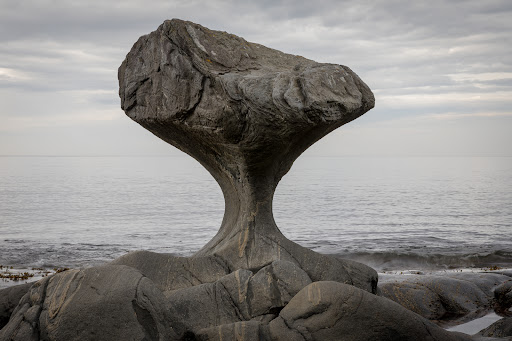 Shaped over thousands of years by the crashing waves, Kannesteinen Rock is a magnificent mushroom shaped rock formation located approximately 17 km (20 min) west of the center of Måløy.