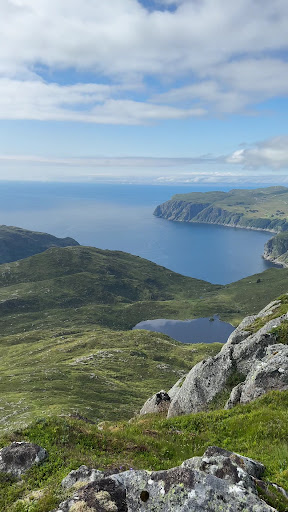 Beautiful panorama scenic view. Start the trip by parking by the local football field in Måløy. The sign says 2.1km, but thats misleading as it's only one way. My gps tracking measured 4.6km in total for that trip. Local guides will tell you the trip takes about one hour, but thats taking it at a very fast stride. Instead I suggest you take the trip at a slow walk and enjoy the scenery. Pack a bag and have a rest with something to eat at the top. Allow for 2-3 hours trip and it'll be a trip worth it. Once on the top you can either go down the same path you came or continue down the other side of the mountain for a round trip. If you like a challenge then continue on to the the next hill "brurahornet". Good hiking boots are recommended. The trail is a bit challenging. Its steepest at the beginning then gets easier at you get above...