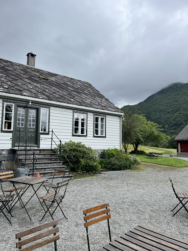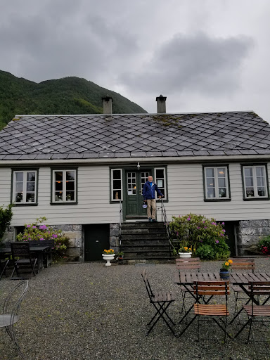 Galleriet består av en ombygd låve, fint plassert på et koselig opparbeidet tun, våningshuset er omgjort til kafé som tilbød både varmmat og kake og kaffe. Atmosfæren var god og velkommende.