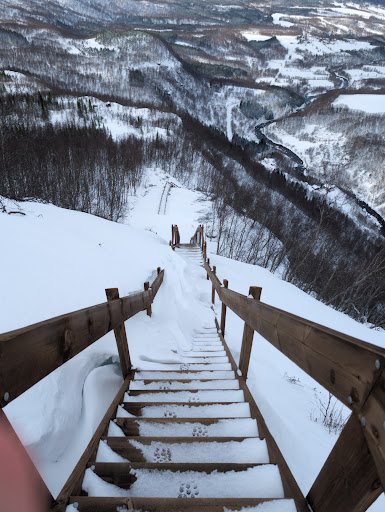 Wooden stairs, 2117 steps that bring your from about 35 m above sea level to about 410 m. Newly built and opened on July 8th, 2023. Nice views over the fjord and mountains already from the lower parts of the stair trail. However, the nearby waterfall (Henrikkafossen) cannot be seen from the stairs. Parking (50 NOK via vipps) is available about 700 m...