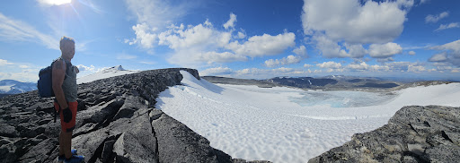 Read moreCool hike and scramble to reach the second-highest peak in Northern Europe. Started from the valley floor between GaldhÞpiggen and Glittertind, and followed the trail up to the summit. Bring lots of water, because after you get on the rocky trail, there are no more water sources besides the sputtering remnants of the glacier/perennial snowfield...