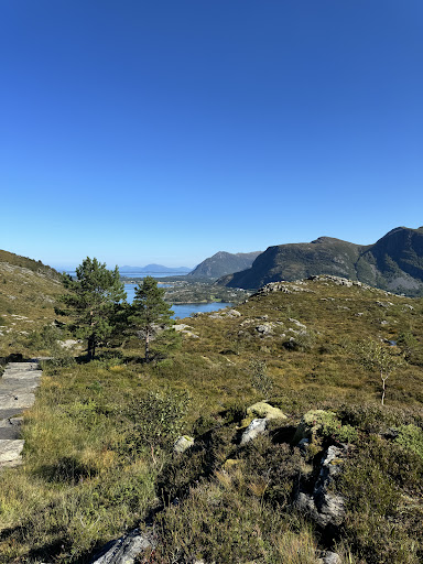 One of the most scenic place ever stumbled upon. Even as this is more a hill than a mountain, the views one gets in 360° without obstacles is just great. The path offers a lot of strange natural scenaries. One that I found magic, was a cotton gras circle within a natural pool,almost forming a perfect circle too. Fireflies, seabirds, and not to forget the walk through cotton gras mixed with blueberry fields. And yet the silence, as Blokallen has steep cheaks ending in a nice flat Plateau, and therfore sound from the rare traffic on the road does not reach your ears, while ships horns make it from all sides.
