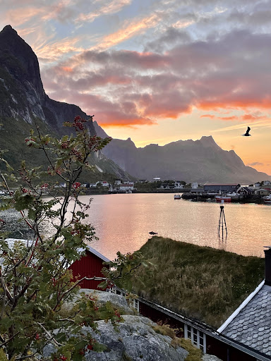 Reine, a remote fishing village in northern Norway, with just over 300 inhabitants. Here you can walk and see wooden structures used to dry the cured fish (stockfish), the rustic red wooden cabins, some with grass on the roof, others with boats stored under their structure, seagulls, all islands in the shape of mountains and the sea that surround them, thus forming part of the Lofoten archipelago. Here, in a timeframe of 3 days I saw rainbows, rain, sunsets, blue sky and the long-awaited aurora borealis. Reine is definitely a charming small village, where I left a little piece of my heart, which I hope to...