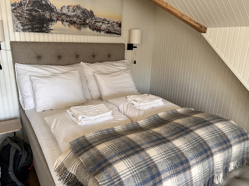 We are so very pleased to have chosen Sakrisoy Gjestegard Manor House (built in the 1880s) for our lodging in the southwest part of the Lofoten Islands. We stayed in Room 6 on the second floor...a beautiful, spotlessly clean and spacious room and very nice private bathroom. The dramatic mountain views from every window were simply spectacular. The manor house had tall ceilings, was immaculately clean and beautifully appointed with wooden beams, pretty curtains and nice light fixtures. A desk, a hairdryer, a small fridge, a TV with English language stations and nice toiletries were provided. The beds and pillows were the most comfortable we have experienced in Norway. My only slight disappointment was that the room had no drawers nor dressers in which to store clothes and there were only three or four hangers provided. There is a selection of cereals, nuts and cookies along with coffee for breakfast downstairs. However, the hands down best part of the Sakrisoy Gjestegard was cutie pie, JACK, who was very kind and extremely helpful in making recommendations in regard to hiking trail ideas, activities, etc. Jack made our stay extra special and is an amazing ambassador to this manor home. I happily recommend Sakrisoy Gjestegard for lodging in the Reine region of the...