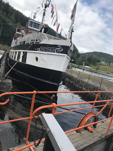 Liten og koselig sluse! Lunde sluse er større og har en liten kafe ved siden av seg. Denne slusa hadde ingen kafe. Dette er en ganske liten sluse, mem det er fortsatt spennende å se på båten som skal senkes ned gjennom den. Det er litt færre folk her enn ved Lunde sluse. Så om du vil slippe unna alle folka på sommeren er denne...