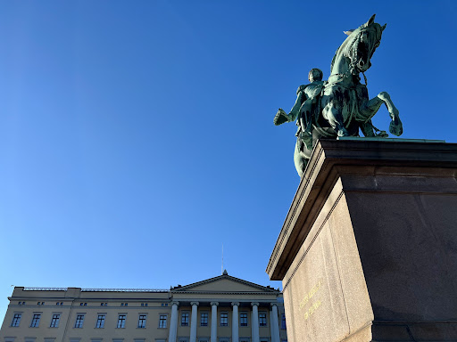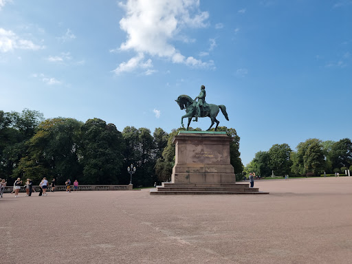 Read moreMonumento ecuestre a Karl Johan fue erigido en honor al rey sueco-noruego Karl III Johan, se encuentra al final de la Puerta de Karl Johans, más precisamente se encuentra frente al Castillo mirando hacia la puerta de Karl Johans, fue realizada por Brynjulf Bergslien. Fue inaugurada 57 años después de la coronación de Karl Johan en la Catedral de Nidaros (1818), el 7 de septiembre de 1875. La estatua está hecha de bronce y pedestal de sienita, y fue fundida en 1874, en Copenhague y después fue trasladada a Christiania. La estatua es descrita de la siguiente manera: -Muestra a Karl Johan vistiendo un uniforme de mariscal sueco y una espada suspendida de la cinta de la Orden de los Serafines. El rey porta el cetro de la Orden de los Serafines , así como la Orden de Caballero de la Gran Cruz de la Orden de la Espada, y alrededor del cuello la Orden de Carlos XIII . El caballo acaba de detenerse y patea el suelo con su pata delantera izquierda, mientras el rey saluda con su bicornio de dos picos . En un lado del pedestal , de sienita greffe de grano grueso del campo de Oslo , se encuentra la inscripción «El amor del pueblo es mi recompensa». En el otro lado, dice: «El pueblo noruego erigió este monumento».- Los planes de erigir un monumento a Karl Johan cobraron vida cerca del quincuagésimo aniversario de la unión con Suecia, en noviembre de 1864, la Asociación Carl Johans, promonárquica, lanzó entonces una campaña de recaudación de fondos para una estatua ecuestre, la cual no causó tanto revuelto en sí, como sí lo hizo el aspecto que debía tener...