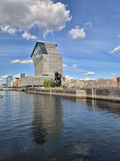 Read moreMoren (The Mother) befindet sich auf der rechten Seite des Museums auf der Pier. Sie wurde in London hergestellt und im Juni 2022 in Oslo aufgestellt. Es handelt sich dabei um eine neun Meter hohe Bronzeskulptur der britischen Künstlerin Tracey Emin. Die unmittelbare Nähe zum Munch Museum soll auch die Umgebung zum Spazierengehen einladen und sie mit dem Museum verbinden. In der weiteren Umgebung befinden sich Bademöglichkeiten, Geschäfte und Wohnungen. Die kniende Frau sitzt in einem Blumenbeet und scheint etwas in den Händen zu halten und zu betrachten, was sie dabei anschaut, kann nicht erkannt werden. Dabei wendet sie dem Museum den Rücken zu und schaut auch nicht auf den Fjord – ihre Aufmerksamkeit gilt ihren Händen. Ob diese Skulptur ein neues Wahrzeichen, neben dem Trotzkopf im Vigeland Park oder der Opera werden kann, muss sich...