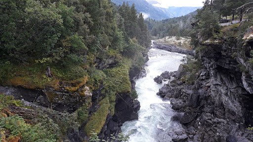 Read moreEin schöner Ort an dem der Fluss durch eine enge Schlucht gedrängt wird. Wasserfallartig schießt und strömt das Wasser über mehrere Stufen hinab und die Gischt wird nebelartig in der engen Schlucht nach oben getrieben. Leider, wie fast immer, wird an solchen Orten der übliche Ramsch, zu überteuerten Preisen, angeboten. Wie sang Bill Ramsey in den 60ern: "Souvenirs, Souvenirs, kauft sie Leute kauft sie ein" Ansonsten hat sich der Abstecher durch "die Straße der Wasserfälle"...
