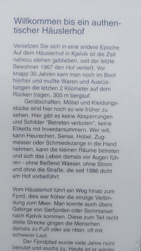 Read moreEin ganz bezauberndes kleines Museum eines alten Bauernhofs. Man bekommt sozusagen eine eins zu eins Betreuung durch die fűhrenden Personen, bei uns war es heute eine ältere Dame in Samitracht, die uns halb auf englisch, halb auf norwegisch durch die Grschichte des Hofes gefűhrt hat. Und wie stolz sie war, das König Hakon und Mettemarit persönlich einmal zu Gast gewesen waren(es gab Fotos davon)!. Und sie saßen an dem Tisch an dem ich auch saß als sie uns das alles erzählte! Mehr geht doch wirklich nicht! Interessante Geschichte lebendig...