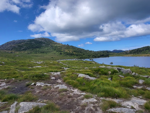 The top is beautiful with views of Sandnes-Stavanger on the other side and the mountains-lake on the climbing side. There are enough red colour markings on all the routes either on stones or tree trunks to keep you guided. The small forest towards the beginning of anti clockwise route has few cabins for shelter & barbeque where one can have a...