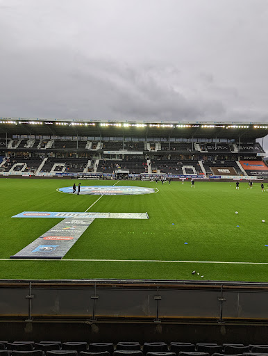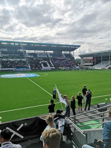Flott stadion etter norsk standard. Busstopp like utenfor, greit med parkering og dagligvarebutikk i stadion bygget.