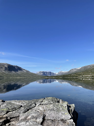 Breiddalsvatnet is a picturesque lake located in Skjåk Municipality, Innlandet county, Norway, just west of the village of Grotli. This 6.9-square-kilometer lake sits at an elevation of 898 meters above sea level and is surrounded by stunning mountain scenery. The Norwegian National Road 15 runs along its northern shore, offering travelers breathtaking views of the lake and its surroundings. The lake is an integral part of the local landscape and ecosystem. To the north, it's flanked by the mountains Helleggi and Krosshø, while the Breheimen National Park lies just to its south. Breiddalsvatnet is fed by the Støre Lægervatnet lake and flows into Grøtlivatnet lake, forming part of a larger water system in the region. Its location near Grotli, a small village with a hotel and skiing center, makes it a popular spot for both outdoor enthusiasts and those seeking a peaceful...