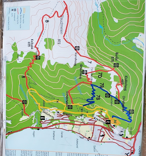 I did the blue loop counter clockwise from 7C (orange). I would recommend this direction. It's a stepped climb to a rolling upper section and finally a sloped descent on the left side to...