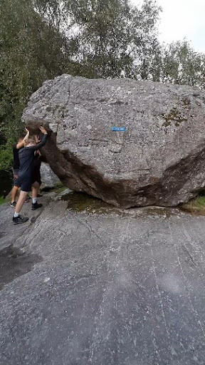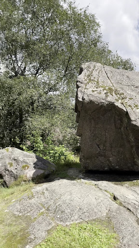 Read moreDette synes jeg er veldig stilig. Tenk at man kan rugge på en så stor stein! Til og med minstejenta på 5 år fikk til. Barna på 5, 7 og 9 år synes det var så som så. Men nydelig turområde er det også. Man kan rugge om man står på venstre side for skiltet eller til høyre. Der er det malt håndavtrykk. Man føler ikke selv man rugger, men dem som ser på ser...