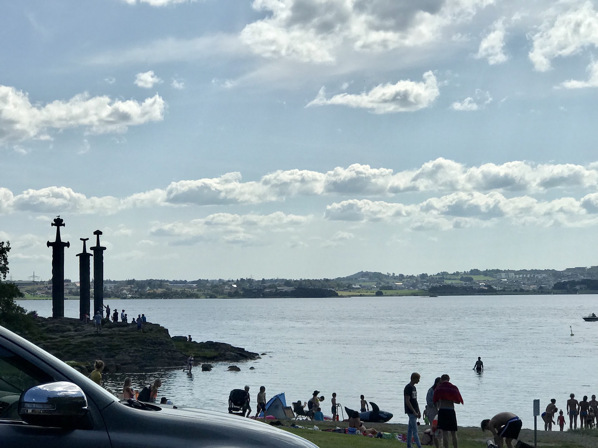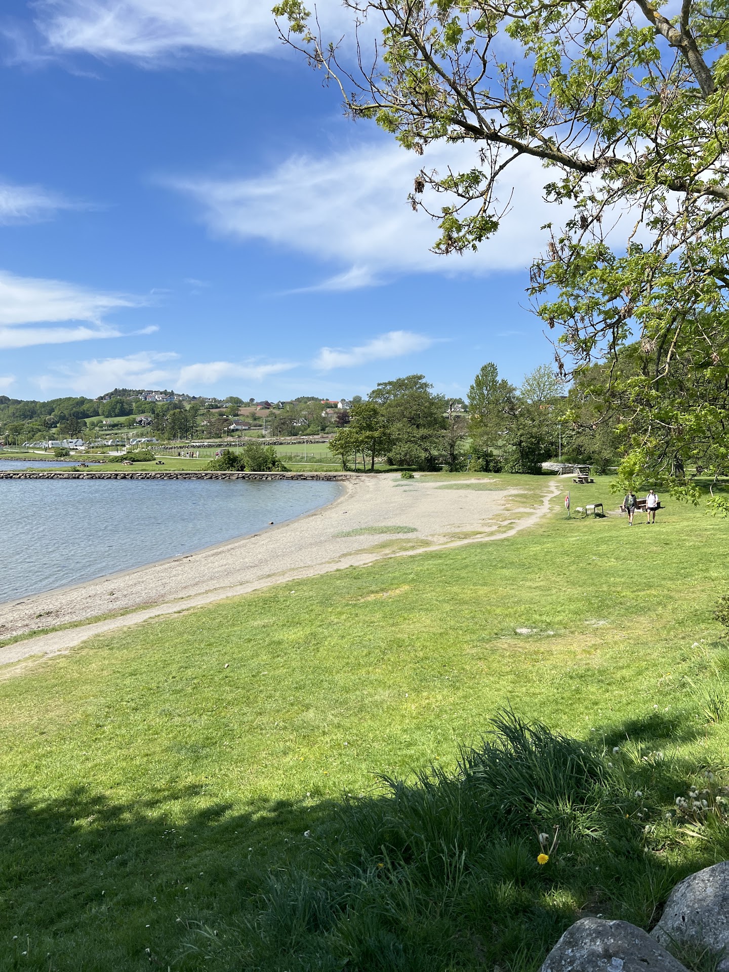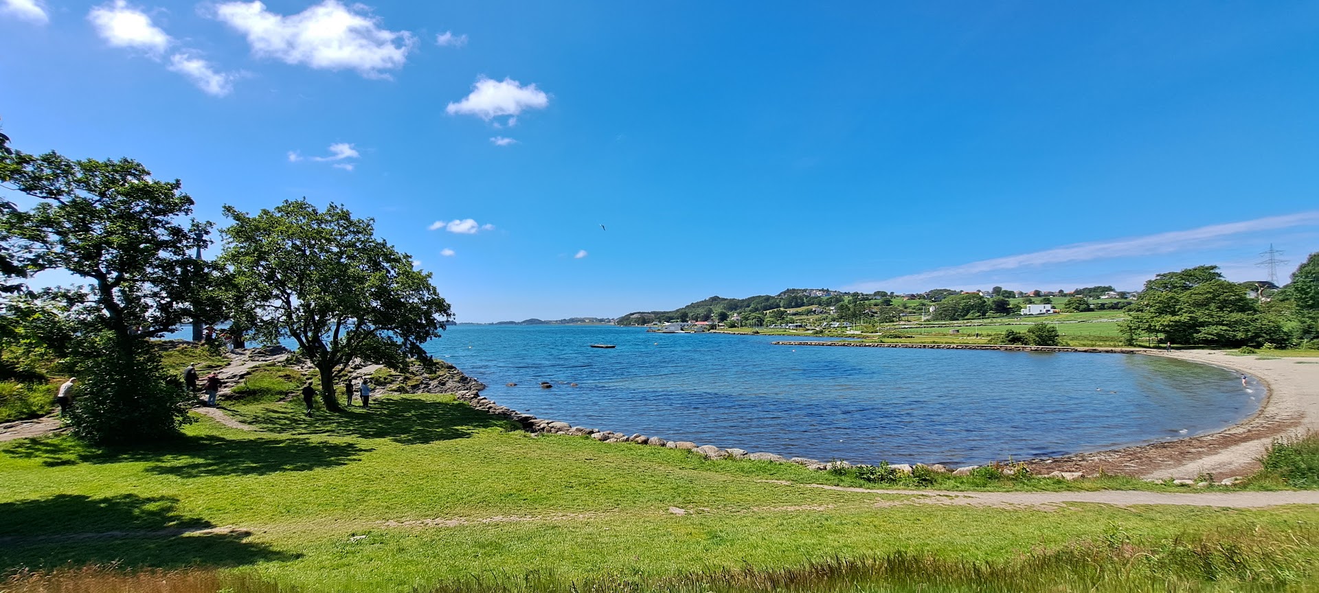 Read moreTotal schöne Bucht mit angenehmen Einstieg ins Wasser/Meer, beginnend mit einem kurzen Kiesel Abschnitt, im Wasser selbst dann angenehm sandig. Grünfläche zum entspannen mit ausreichend Schattenplätzen, Tischen mit Bänken, zwei Grillstationen und einer öffentlichen Toilette zwei Minuten entfernt. Den Öffnungszeiten entsprechend gibt es ein kleines Café vor Ort. Das Panorama mit dem Sverd i Fjell Denkmal sucht seinesgleichen. Ein Ort der uns unglaublich gut gefallen hat, denke aber es kann an sonnig warmen Tagen ordentlich was los sein....
