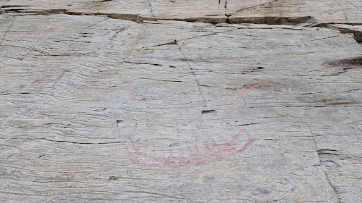 Read moreEindrucksvolle Felsritzungen mit einer Erklärung dazu. Sehr einfach gehalten. Die Zeichnungen waren mal rot eingefärbt gewesen, was es einfacher gemacht hätte sie zu erkennen, leider sind sie nun ziemlich verblasst. Parkplatz aus der Seite...