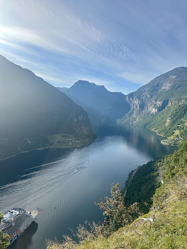 Beautiful view over the water! To get here, you need to walk/hike around 20 min from Vesteras Gard (entry next to the restaurant terrace, don’t forget to close the gate). To get there you can either drive up to the restaurant (parking is paid and not possible for cars over 2 meters high) or hike up the stairs from the city. This option is quite steep and intense, but doable. On the walk there, we met some goats and alpacas from a nearby farm. The path after the restaurant is quite easy with some uphill walking and last part is downhill to...