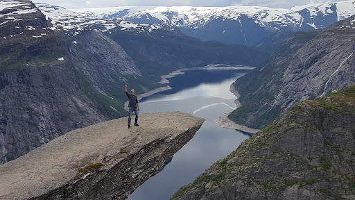 Read moreHaving climbed up Vikanuten (1000m) behind Jondal earlier in the week, I was ready for a stuff upward climb to start to get to Trolltunga. I was pleasantly surprised to find a series of switchbacks which meant that the initial climb never got steeper than 1:10. Sure, it blows out the distance to 28km for the return trip, but this trip felt easier (and longer) than Vikanuten. Going up early (well, 7am-ish) meant that the initial 600m was in the shade. A real bonus! Whilst it's fairly busy, the alpine zone is so beautiful that you don't really notice. The Troll's tongue is definitely a landmark...