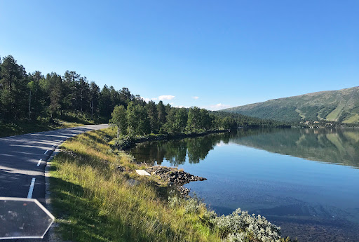 Coming from Valdres and Tessanden, not long after the ascent while along Rv51 you pass lake Lemonsjøen. A tranquil little lake, at the south'ish end of it you'll find a "fjellstue" (lodge) that also serves food & drinks. I didn't stop there. Pics taken...