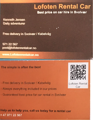 Read moreWe were looking for a rental car at Svolvaer on August 17 without advance reservation, having arrived at the town previous evening. We could not get even one of the more established car rentals like Avis, Hertz and Europecar to rent us a car for just a day. Our hotel recommended us to try the two local rental companies, Rent A Car Lofoten and Lofoten Rental Car. The first one seemingly had several cars standing on the yard but once again simply refused to rent us one. Whereas Lofoten Rental Car just had one car available on that day and made sure that it was rented to us at a very reasonable rate. It was a manual transmission car and even though I haven’t driven one for several years, it really wasn’t such an issue. Kenneth Jensen, owner of this outfit, is a wonderful individual and went out of the way to make us comfortable. I strongly recommend him and his car rental company to visitors to this...