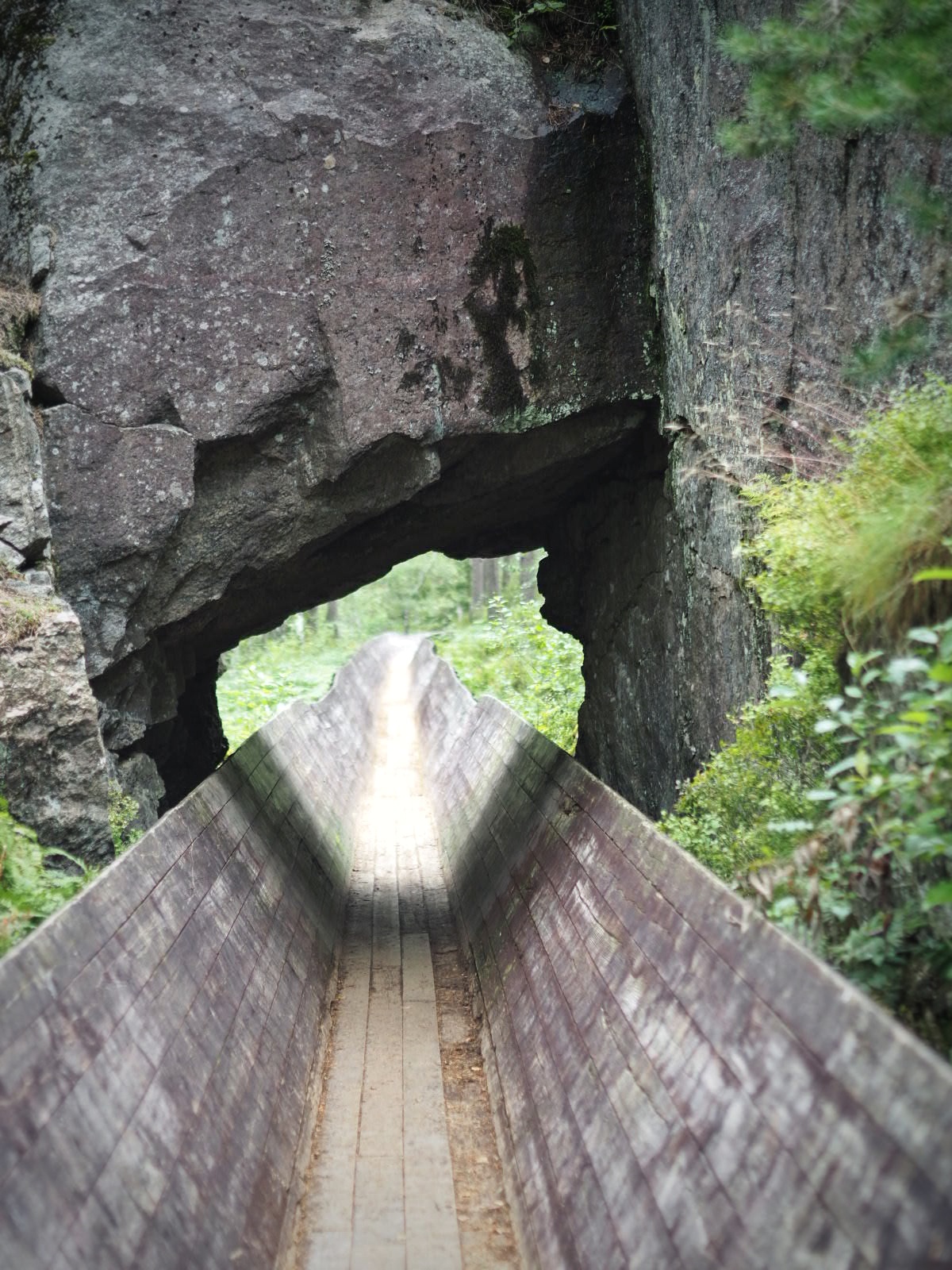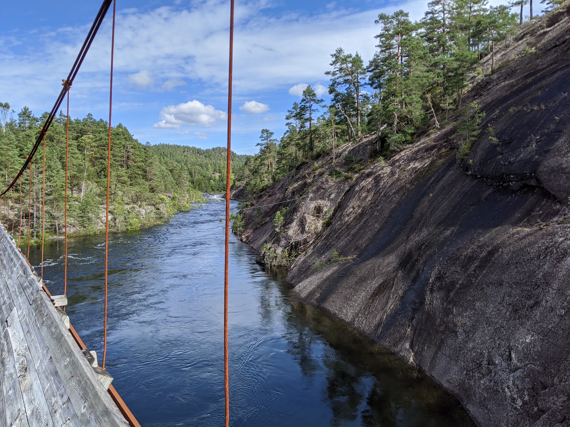 An overseen place that has a lot more to offer than you might think. You walk in the old lumberslide going along side the strong river and beautiful forest area. The route is about 4 km back and forth and all ages can join in. There are small side paths that take you to other great views. At the farm which is a side path there are tables for eating your lunch and even several fireplaces. There are also shelters for you to camp in. Further down the main path is a side path woth a stone bridge icon - important that you take this since it gives you a spectacular view down a...