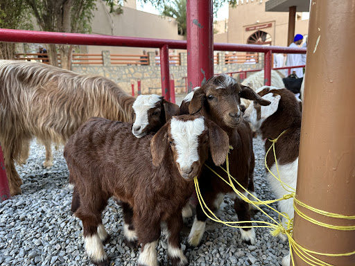 Il Goat Souq si svolge in uno spazio circolare all’aperto, delimitato da una bassa recinzione e circondato da spettatori, commercianti e turisti. L’ambiente è vivo, polveroso, e vibrante di energia. L’aria è satura di muggiti, belati, grida di commercianti e il brusio dei contrattatori. Qui si respira la tradizione beduina, ancora intatta nonostante l’afflusso crescente di turisti. I venditori (uomini omaniti vestiti nel dishdasha bianco e con il tradizionale kummah o turbante) guidano capre e montoni tenendoli al guinzaglio e li fanno sfilare in cerchio davanti agli acquirenti. È una sorta di asta non formale: i potenziali compratori osservano, tastano, valutano, e fanno offerte sottovoce. Il ritmo è veloce, a volte caotico, ma sempre controllato. Gli animali vengono esaminati come fossero opere d’arte o auto d’epoca – i più belli vengono subito notati.