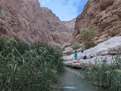 Read moreEin Highlight! Starten Sie möglichst früh, ab ca. 10 Uhr kommen die organisierten Touren aus Muskat, dann ist auch der große kostenlose Parkplatz unter der Autobahnbrücke schnell voll. Man muss zunächst mit einem kleinen Boot für 1 Rial (hin und zurück) zur anderen Wadiseite übersetzen . Vorher kann man auch noch eine Schwimmweste mieten, wenn man nach einer etwa einstündigen Wanderung vom zweiten Pool noch ca. 200 Meter zu einer Höhle mit kleinem Wasserfall schwimmen will. Einen Guide braucht man keinesfalls, folgen Sie einfach dem Schotter- oder Betonpfad und an einigen unübersichtlichen felsigen Abschnitten markieren schwarze Pfeile den Aufstieg. Festes Schuhwerk und ein Trekkingstab sind von Vorteil. Belohnt wird man mit eindrucksvollen...
