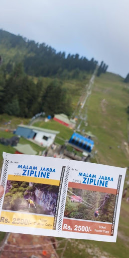 Current rate is 3000/= where you go up on the chairlift and come down by zip line. Its 1400 if you go up and come down on the chairlift only. The zip line itself is a 45 sec ride and its amazing, the view around it is worth it and a lot of fun Just keep in mind that the stairway type path to the zip line area is not easy at all, its very slippery incase there is snow and you have to be very careful, there is no side rail to hold and anyone with knee issues etc shouldn’t be attempting it. Also anyone under 40 kg or over 90 kg is not allowed on the zipline. Overall its a fun thing and totally worth going to malam jabba...
