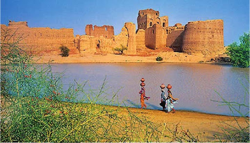 Mauj Garh Fort, established in 1743 AD by Muhammad Maroof Khan Kehrani, stands as a testament to Mughal architecture, although now mostly in ruins. This square fort, originally adorned with glazed tiles and featuring a single dome, was constructed using solid bricks and mud. Today, while traces of its historical grandeur remain, much of the fort's structure has succumbed to time. The fort's square plan measures 325 feet on the southern side, 312 feet on the western side, and 238 feet on the northern side, fortified with semicircular bastions along its walls. Located 80 kilometers from Fort Abbas, 170 kilometers from Bahawalnagar, and 22 kilometers from Marot along the Yazman-Fort Abbas Road, Mauj Garh Fort once held a significant place in history, now preserved as a reminder of its former splendor despite its current state...
