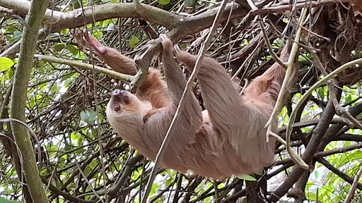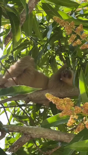 I also saw one sloth up a tree, and a handful of racoons. Which you should not feed, according to several signs.